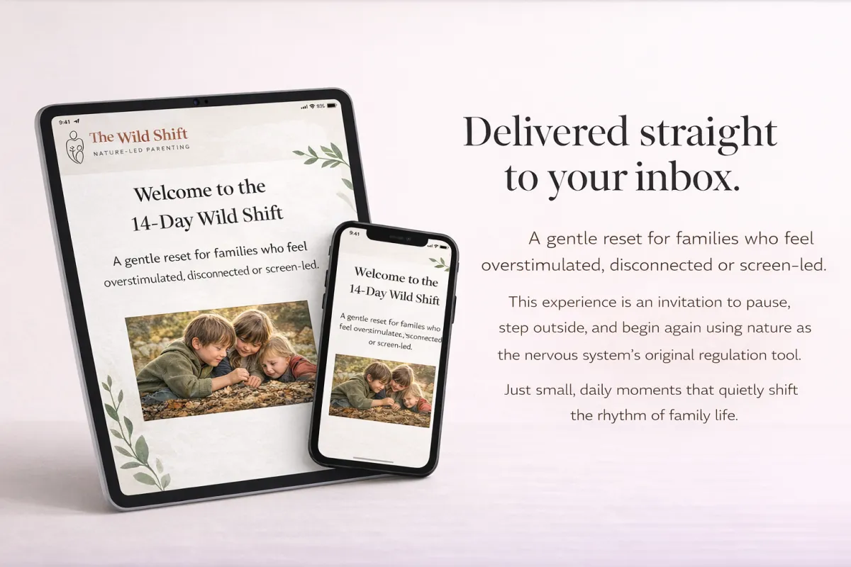 The Wild Shift™ Mentorship is a guided, parent-led journey into Nature-Led Parenting — designed to help you rebuild calm, rhythm, and steady leadership at home.