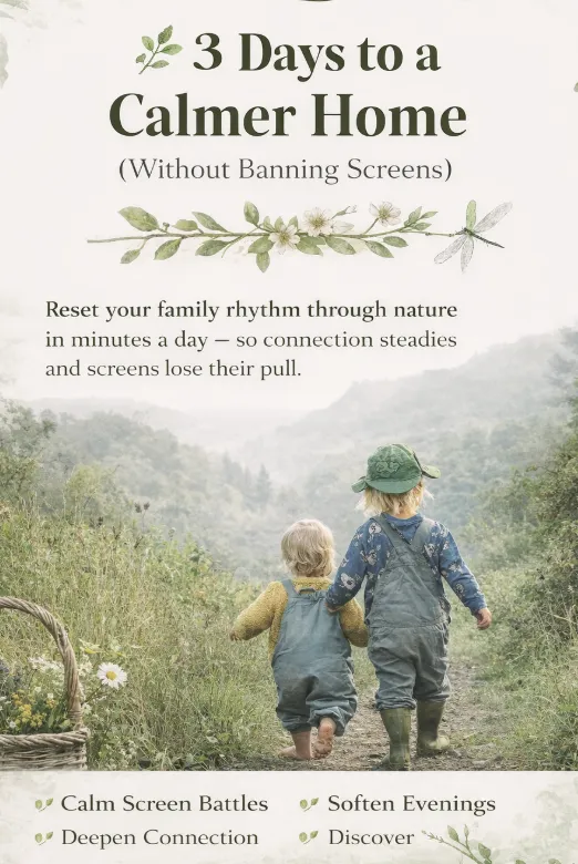 Over 14 days, you’ll receive simple, guided practices that fit into real family life — helping screens loosen their grip while connection and calm quietly return.